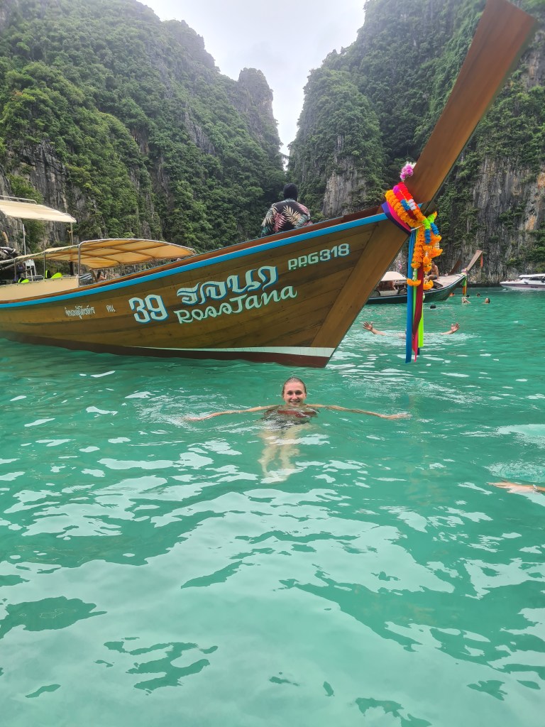 Waking up fresh, prepped for my day trip around the Phi Phi islands was a nice feeling as I was seeing some rather hungover individuals on my walk around. The boat trip included a stop at Shark point, which unfortunately there were no sharks at, lots of cool fishes though. Next up Bamboo island, Monkey beach, Viking Cave (a very very cool little place to see) and Pileh bay. We stopped too snorkel here and I saw a swordfish! Did contemplate if it would attack me but it did not, I think they are harmless. Our final stops were Loh Samah Bay and Maya Bay, the famous beach due to our good friend Leonardo Decaprio. A quick meal with friends before heading out for the evening. Carnage unravelled for Emma that evening, with my apparent guts of steal shining through as I par-take in fire skipping, and a boxing match. And once again waking up with war wounds, this time, the skin off my big toe gone… Waking up with the absolute fear of some of my other actions, I brave the good old sorry text…