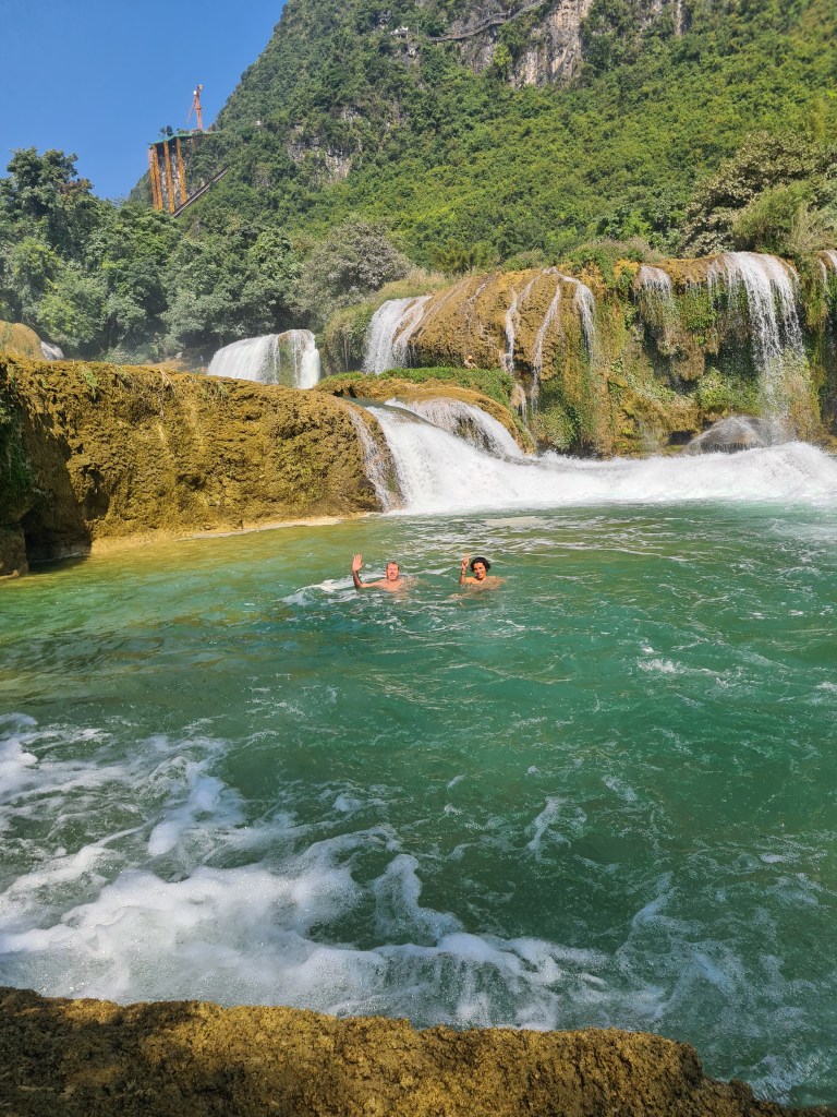 First stop is the famous waterfall, which I was more than happy to revisit! This visit was far more adventurous with us climbing up and over with the idea to cross the border… Blake had the brilliant idea to go swimming, with the current not looking too strong when he enters. A sceptical Ali follows, with me trailing behind particularly afraid about going flying off the edge of the largest waterfall in SE Asia… With Blake joking about how funny it would be if it was controlled by a dam and suddenly more water started coming down, I took an attempt to join. Upon entry, and with a show from Blake, we were made aware of how strong the current had become… Opting for a paddle, it was soon time for the boys to get out. This is where I saved their life (kinda). As they fight the now much stronger current to get from the pool of water back to the edge my “mega strength and grip” grabs hold of Ali to help him up. Blake followed, this time it was a more difficult exit and Ali most certainly proved more life saving than myself. After counting our blessings and laughing about how much water was now flowing through the waterfall (it’s connected to a dam lol), we headed back down. Over all some incredible views (only of the waterfall of course).