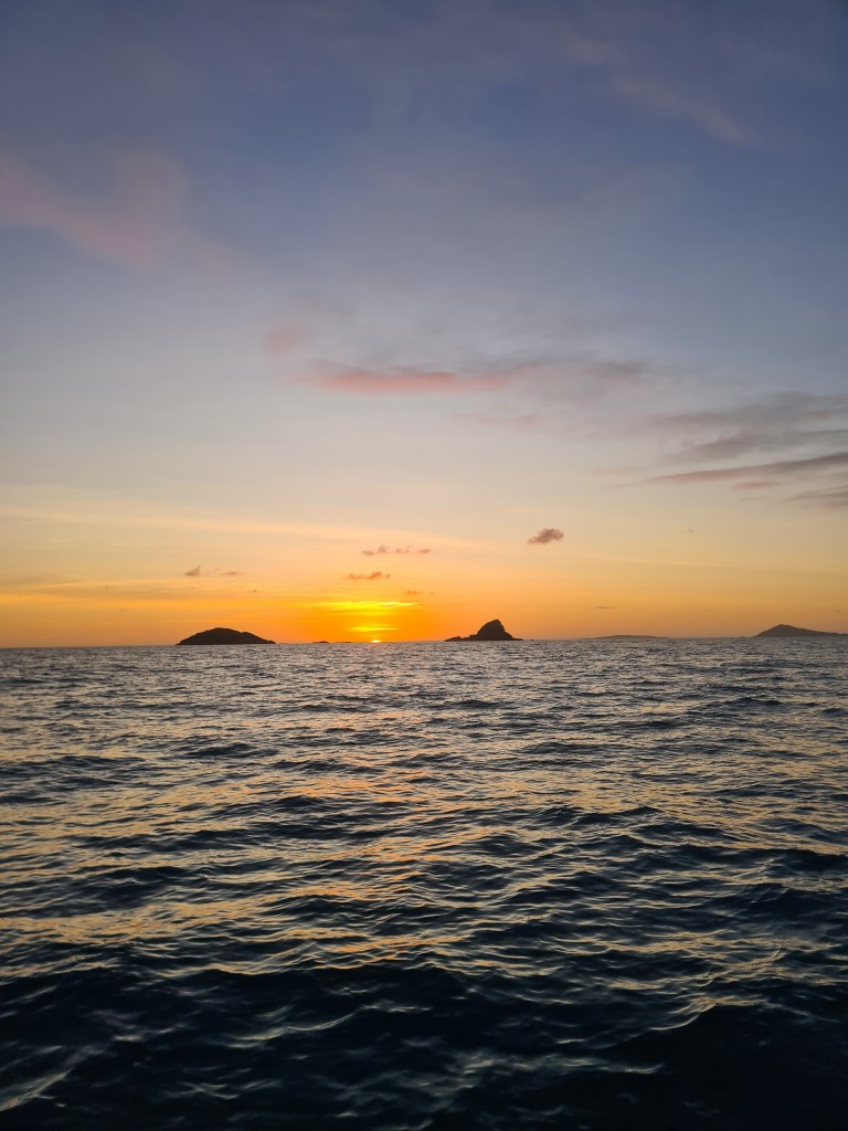 The next morning, I moved my things onto the boat, with the plan that we’d dock on Monday in case I got sea sick and needed to re-think my transportation methods. The day was spent snorkelling again, this time spotting a sting ray! Mark and I had a picnic on the beach before heading to meet Rus and Tim for a few cocktails. Mark came on board for the night as well, as we were docking where he worked so we could give him a lift (as you do). Rus cooked up a steak and sweet potato dinner before the dolphins came out to play after sunset! Watching one dolphin jump up and around the boat! Then it was an early night to see how my first night sleeping on the boat would be. Mostly, it was smooth sailing (pardon the pun), except for waking up at 4 am seriously confused about why I was moving. According to Rus, we were all awake at 4am, so the wind must have changed and awoke us as we started rocking in another direction. Who knew lol…