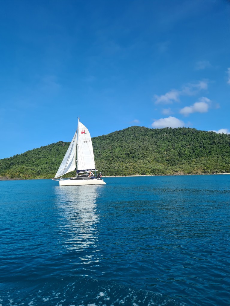 On arrival at the Keppels, I spent my first day hiking a trail across the island and stopping at the beaches to snorkel. Snorkelling at Monkey Beach, Long Beach, and Shelving Beach, seeing a turtle in Shelving Beach and lots of fishes. In the evening, I met a chap called Mark, which then set the beginning of a bloody big adventure. As we stood and spoke, a guy came over to us and showed us a photo he’d taken of us. This guy was Rus. We later got introduced to Tim and 3 bottles of wine later, I approached the subject of coming aboard their boat, and to my surprise, I got a yes. They would spend the next week sailing across to Airlie Beach which is actually where I was planning on going next, now I would sail across with these guys, through the Whitsundays and arrive at Airlie Harbour and hop off. Beautiful plans were created through wine. However, at 3 am, I woke to the feeling I needed to vomit (which I did), and that wasn’t quite as beautiful…
