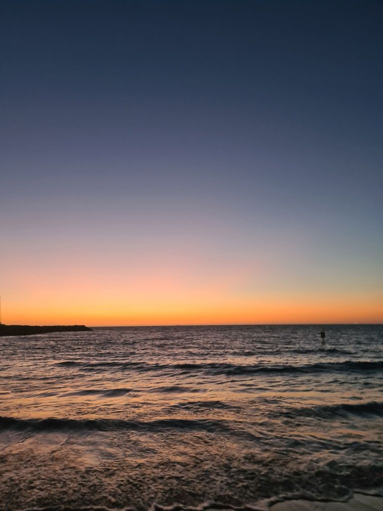 The next day I hired a bike and headed off on my adventure. First up I followed an online map to scope out the local street art, with some pretty impressive sights on show. Before heading for a 12km ride to Cottesloe beach, a place I’d read was great for snorkelling. Cottesloe was along the north coast, so the opposite direction of the beaches I saw yesterday, and the ride did not disappoint. The beaches were far less busy and just as beautiful with sand stretching for miles. I passed Leighton beach on my way through, stopping to admire some of the beauty present. I spent some time on the phone to a friend back home before heading for a snorkel, spotting lots of very small white fish, some large white fish and a school of easily over 100 silvery blue fish. It was definitely a good spot, however the wind was MEGA so I quickly decided I was getting cold once out the water and headed back to Fremantle. The ride there was very easy (and not because it was down hill because Perth is incredibly flat), however I must have missed that the wind was pushing me the whole way there, as the ride home had some challenging moments as I battled the winds. Luckily my lungs could hack the exercise and I made it back to base unharmed, with an evening nap needed before dinner and heading to watch the sunset. The sunsets in the west so I was highly anticipating the views on offer, and it did not disappoint. A very pretty end to my day.