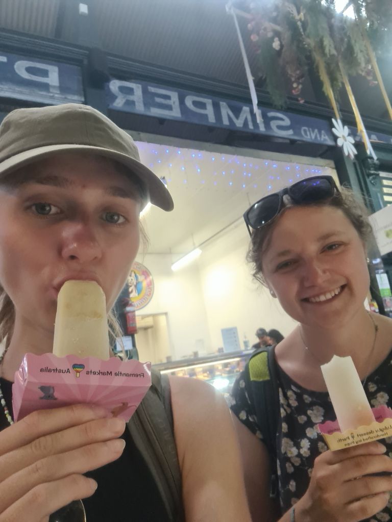 My second day was a chill one, as it was a scotching 41 degrees! I headed into Fremantle to meet Larissa before she left to go back to work, and we explored the markets, where ice cream was eaten, the best fudge I’ve ever had purchased and some kangaroo was tried. Kayla met us later on with another friend Lesley and we spent the afternoon chilling in the shade under the trees, chatting about life as the world went by. The evening was spent in Perth centre, as we walked through John Oldham park, being greeted by cool little water falls and a huge kids slide (which of course was tried and tested a number of times). Then we headed through Kings park up to DNA tower to watch the sunset across the city. After another huge day it was home, dinner and bed, after averaging over 20,000 steps per day plus swimming my feet needed a chill!