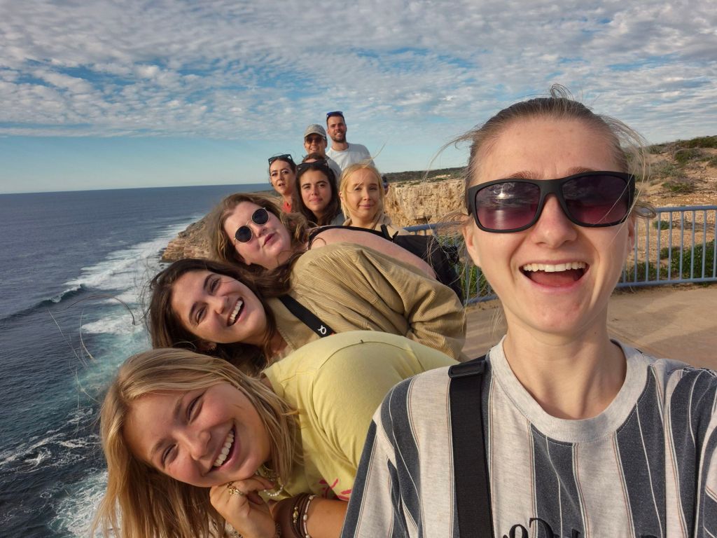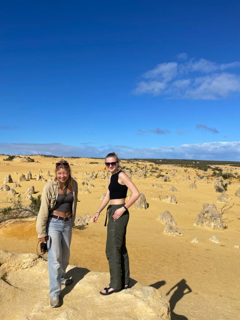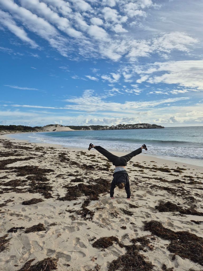 Day 7 was a trip out to Monkey Mia, we saw dolphins in the shallows of the water and then hired kayaks for the morning. We saw some cool small fish and two giant shark rays, and I spotted a weird animal floating in the water (picture attached). I docked my kayak and went climbing on big red hill, a pretty fun climb with a lot of sliding around in the sand! The evening was spent veiwing some of the lookouts, including Red Bluff, look out, and little lagoon where we watched the sunset! Dinner that night was breakfast for dinner, an odd but not awful meal, I still don’t agree with pancakes and bacon but could defo agree with a cooked breaky for dinner followed by pancakes as pudding
