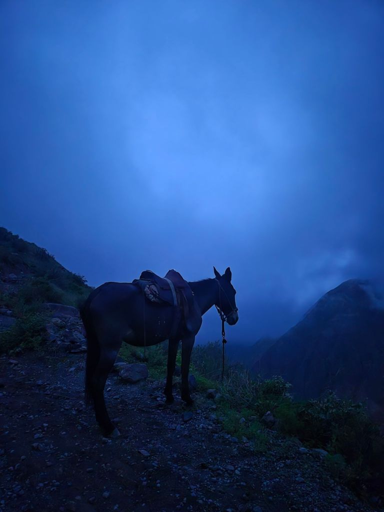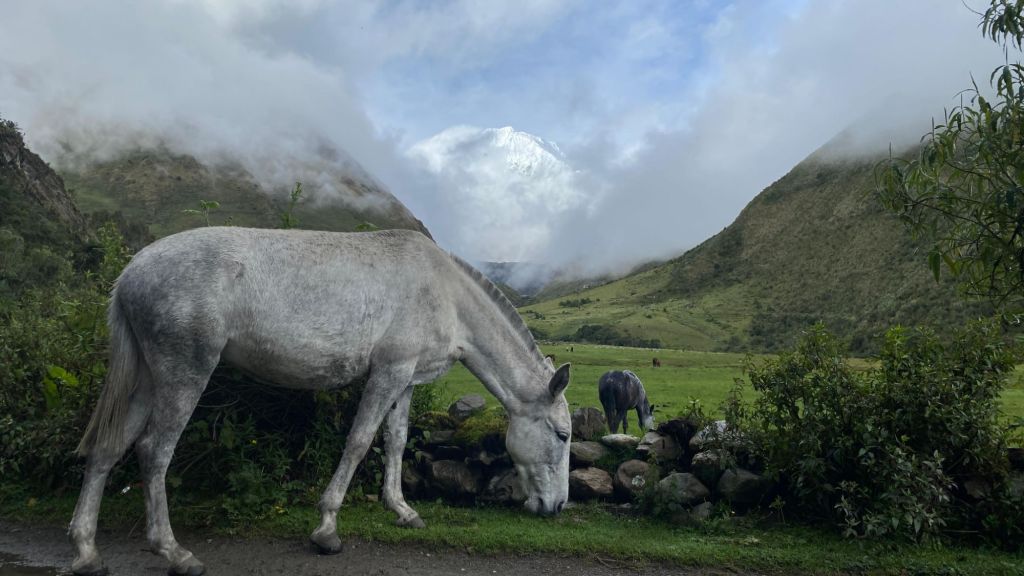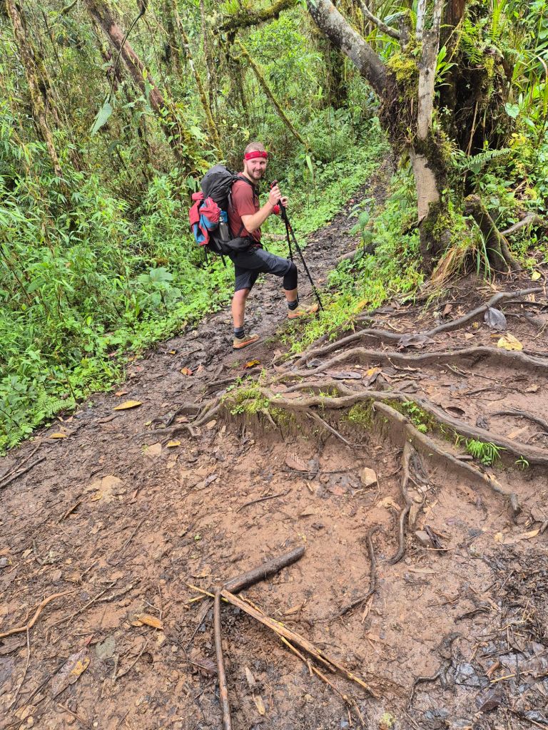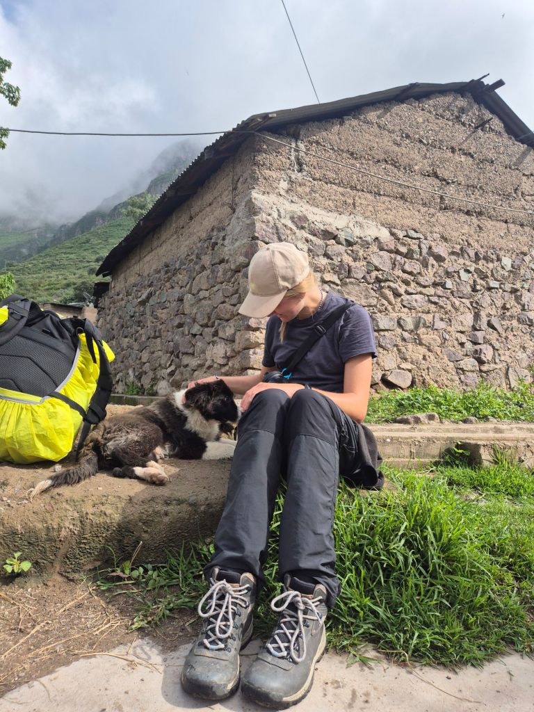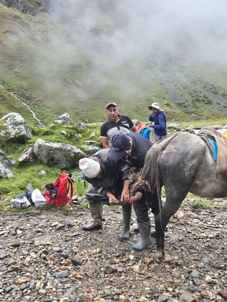 Day two began with an early start and an interesting breaky of a strange oatmeal like meal, I ate it anyway due to the energy needed, but it was a very odd consistency! It was a 20km hike day, starting with some mild rain and carley kicking off about the mud (it had rained a lot overnight). Then the rain started to get crazy heavy, and from here, we got colder, lol. Part of the hike is at 4600 meters, and at this point, I thought I’d get frost bite. We got soaked for hours, yet we all managed to keep up the morale. For Carley, this ended, when at a river crossing she fell in, i attempted to help but subsequently got half dragged in, too, lol. Her reaction was quite funny, and she just walked through the rivers from then on. It might not sound funny to read, but we all laugh a lot now! We had a lunch break, where we made tea and brought a quick meal. However, of course, by stopping, we all got cold and morale dipped temporarily! The rain luckily stopped, but just 1 hour before the end of the walking day, it was very typical but at least meant we could enjoy the end of the day and finally got some good views! We arrived at our hostel and had a warm shower before playing more games and having some more giggles. We had dinner and met back up with 2 other people from the hostel the night before, where we all discussed the days ahead! We then all headed to bed, but not before the kind lady offered to dry our shoes for us!