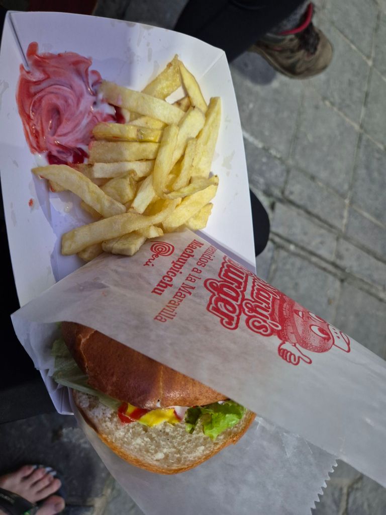 The next day, we headed down for breaky, and this is when the hostel went up a million points! A buffet breakfast, all you can eat/drink! Tea, coffee, juice, cereal, lactose free milk!! Scrambled eggs, saluted potatoes and veggies, fresh tropical fruits, cheeses, and hams. Honestly, it was crazy… after dying at breakfast from happiness, we headed out for the day. We actually headed to a neighbourhood over called Barranco, well known for its street art! Here, we met up with Felix (see Salta blog for reference) and his follow companion. We spent the day roaming the streets, checking out various art museums, eating tasty cookies, and having nice slushys before heading for dinner. We originally went into a very posh establishment for dinner, but upon viewing the menu, it quickly departed when seeing the prices, lol. We then headed to a burger place with all 5 star reveiws, upon ordering burgers we noted the free cookie you receive if you leave a 5 star reveiw, soo ofc we left our review before even seeing the food and gained a cookie! We then watched the sunset before taking a walk home.