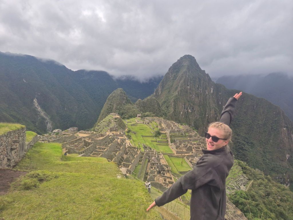 On the final day of the trekking to machu picchu, we woke at 6 am to all have a final breaky together, with Marik leaving earlier than us to go to machu picchu! We enjoyed a lovely breaky (eating as much as possible of the buffet, lol). We then said our peaks and pits of the trip and said our goodbyes, having started the trip together as practical strangers, and now marik definitely knows far too much about us and our bodily fluids! Carley and I just had a wee chill before our final hike up to machu picchu. You can get the bus, but we aren’t pussys, and we aren’t gunna to quit now so close to the end, lol. (We also forked out on the expensive train back to cusco that night for our comfort, so the bus isn’t in the budget!). The hike up the Machu Picchu was kinda short but also felt very difficult, mainly due to the exhaustion from the previous days! On arrival to machu picchu we were very apprehensive, after being told it’s usually cloudy at 3pm (our booked time slot), but we had absolutely perfect wheather for the first half, and a little rain for the second, but the whole sky was clear and we had amazing veiws! We walked around and explored the area while also listening to the guided tours around us to learn about how the Incas built machu picchu and why. It was quite interesting, considering it’s a bunch of rocks! I was sad to learn that a lot of the structure has actually been re-created, but there is a part of the area at the end of the hike that you can see is still the original ruin. The hike back down was CRAZY wet, lots of rain… ending the hike how we started, lol. We walked back, straight to the food stands where we had a starter of pig heart kebab, followed by marys burger and cheeros once again! It was once again amazing. The train back was very cramped and also kinda cold, but we arrived back to the hostel in Cusco and dived straight into bed!