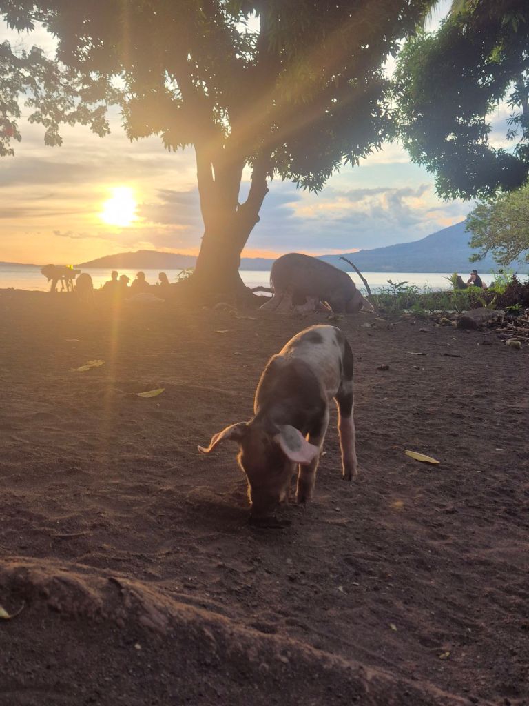 On friday we attended the very famous tree house party! In the afternoon, we headed for a food a very small, local “restaurant” to line the stomach, which was actually a local ladies’ home, where she cooks you a traditional nicuraguan meal. It was very tasty, very filling and super cheap! Then we headed to the tree house party. The party itself was kinda cool, with a super nice location, some hanging bridges, and a nice vibe. The DJs weren’t all awful, but some were a bit shit lol. We met lots of dutch people at this party, including some dutch pharmacists who we spent our night chit chatting to (and probably embarrassingly over sharing our funny life stories, lol). We also met the resident porcupine, which was very adorable! This was my first time boozing in some time, and I’d say it was a mostly successful run. However, I did have some what of a hangover the next day!