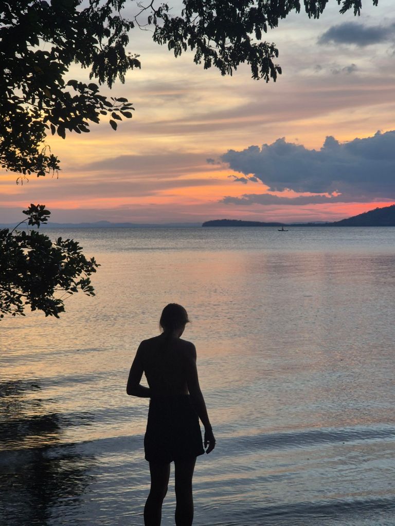 My first full day on Ometepe Island started with a morning workout and reading my book. This is an old habit I wish to regain as it’s definitely something I’d been doing less in recent weeks, and I’d put my reduction in mood down to this. In the morning, we hired bikes and headed out to explore. We headed to the local market, where I purchased the most delightful brownie (the brownie addiction could be seen as a growing issue but whatevs). We continued our ride, arriving at a nice little beach restaurant where we had juices, and I read more of my book while looking out on the lake. The rest of the day was spent chilling in the shade, as I’d burnt a tiny wee bit! In the evening, we biked to mango beach to watch the sunset and take pretty siloette photos. Then it was time to bike home, which was very fun but also a big work out, it was also pitch black, so we had to cycle with our head touches on as headlights, lol!