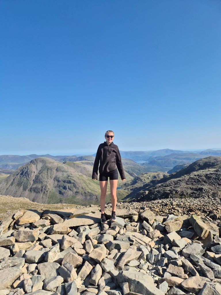 I also headed to the Lake District, for a reunion camping trip with my uni friends! We secured a really cute little camp site, and made a very successful camp for ourselves (which is quite impressive as in previous years, we’ve forgotten the tent poles!). Our first day in the Lake was spent swimming in the lake, and heading on a really cute little hike to a local waterfall, before heading to a place called boot, for a post hike pint! The next day was an early rise, hiking up Scarfell Pike. We were very blessed with the weather, with clear skies and lovely views of the lake below. Me and Liv hiked up together, before getting to the top and making some companions, where I traded biscuits for a cup of tea (a great deal!). We all then hiked down and headed back to camp, but not before a stop at a local pub for a pint of apple juice and an unreal roast dinner (SERIOUSLY GOOD!). The evening was spent eating bbq food and chit chatting about life, before heading home the next day.