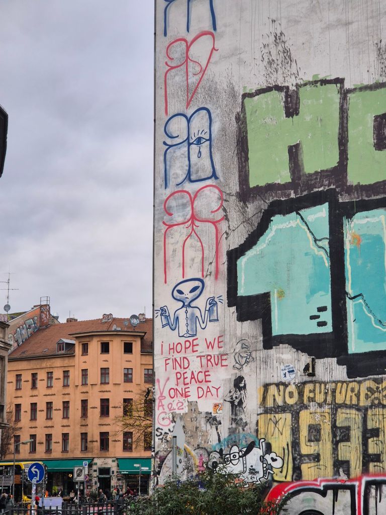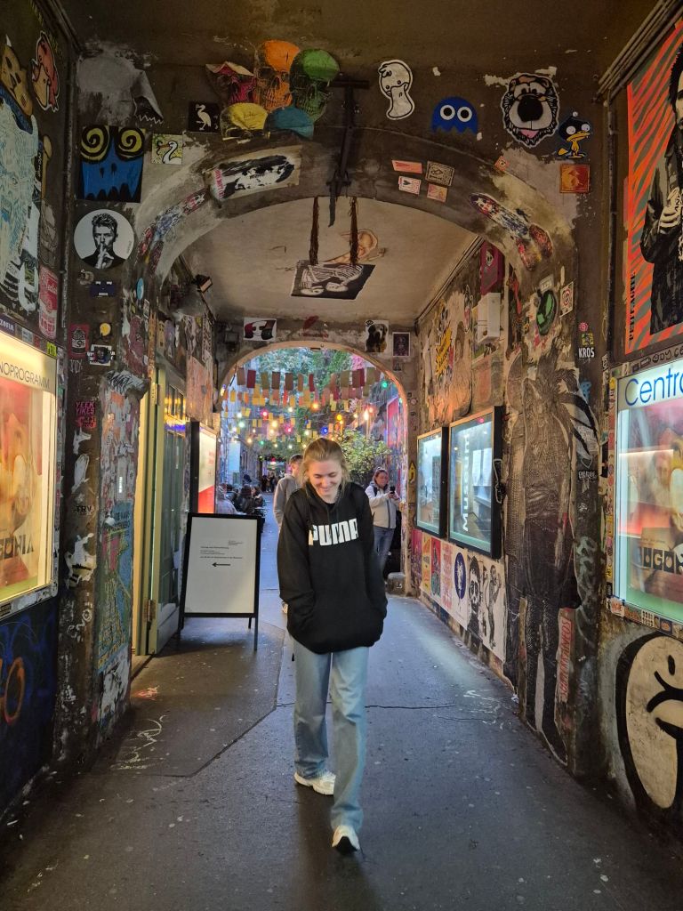 My next stop was Berlin, a solo adventure. The hostel i stayed in was kinda shitty (no kitchen, crazy), but this did give me an excuse to explore the local foods, one night having a doner kebab which i thought id hate but it was actually so good, and another having some food at a food market in one of the cool districts. I explored the Berlin Wall, and the street art of Kreuzberg and the east side gallery, saw the world clock and a crazy man busking near by, and witnessed some of the light show on the Brandenburger Tor. I made friends during a walking tour, and subsequently spent the next few days with Sophie, where we explored the previously known east side and west side of Berlin. We went to a free museum where we had a giggle from a very serious German man stating that we simply could not wear our out door coats in the exhibition even though it was absolutely freezing! I visited the Topography of terror, a very educational museum highlighting how the Nazis rise to power, and honestly highlighting how history is unfortunately showing signs of repeating itself (that’s aimed at you, you far right crazy c*nts). One evening was spent exploring Berlin’s nightlife, which i think i will go back to explore one day properly, but currently is not a priority to me.