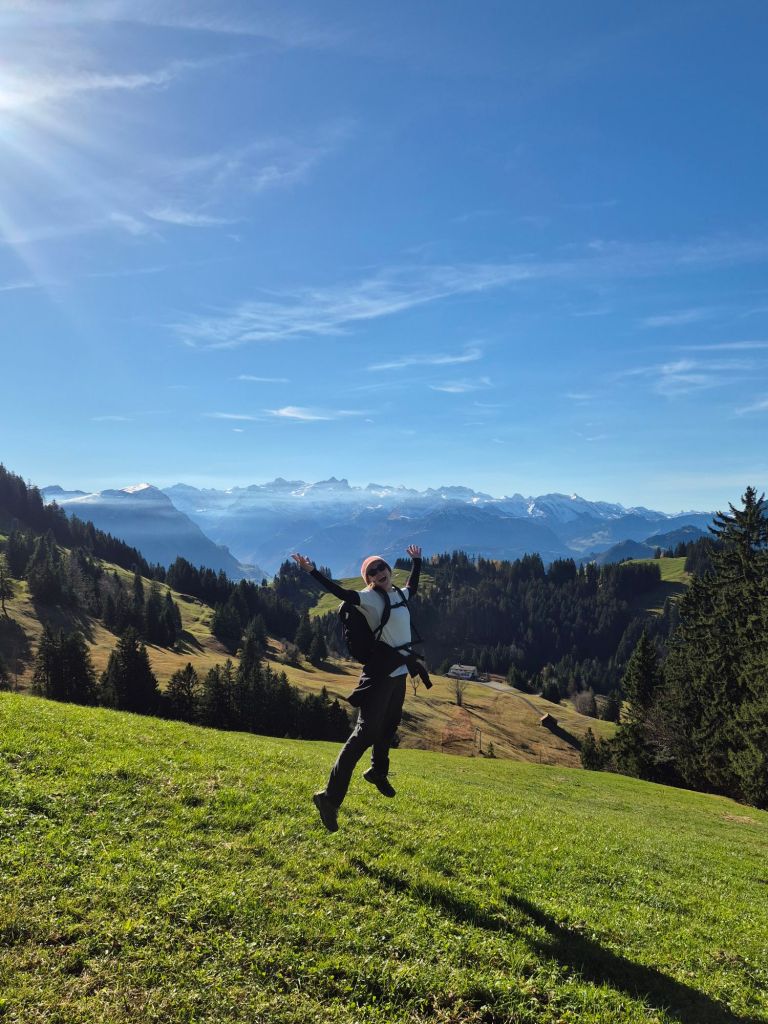 Now given it was now November in Switzerland, it was kinda chilly, and it meant some hikes weren’t possible because of the snow, but we didnt let this stop us! Up first was Bürgenstock Felsenweg Wanderung. This was a very cute walk, where rabbits and some very cute baby cows were spotted! It was also the moment I realised the public transport system is Switzerland is truely something else, and if the rest of the world ran like this itd be unbelievable! You can count on the transport system to the minute. The evening was chilled, filled with tasty food and card games of various sorts!