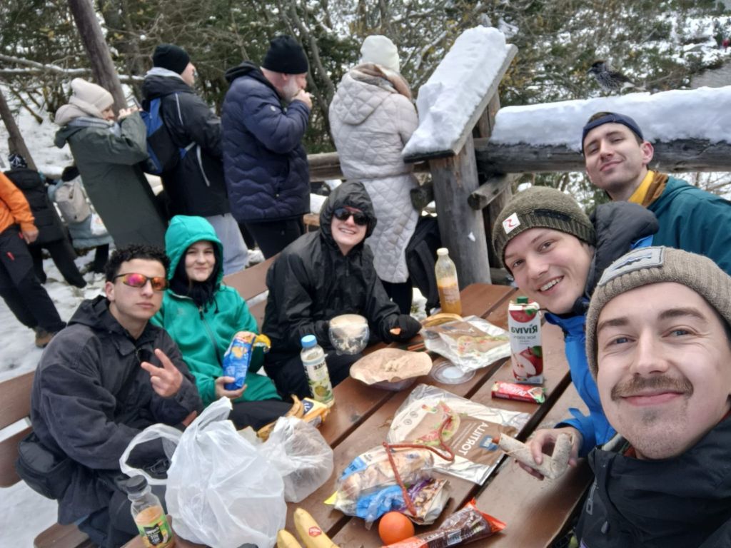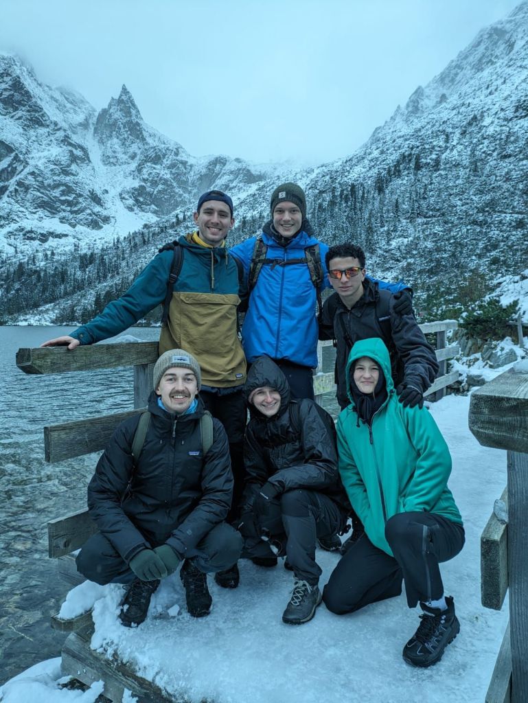 My next stop in Poland was Zakapone, in the Tatra mountains. My first evening was spend getting equanted with the area, visiting a very cute wooden church and walking through the woods near by. It’s a very cute little area! The next day me, and my new friends seized the day, even though it was absolutely pouring of rain. We did a hike to Mount Nosal, and proceeded to get very wet and cold, before spending the evening at the spa and pools. The pools had a fun zone with 5 water slides, which me and Arte went on ALOT, we then enjoyed the various saunas and steam rooms in the spa, including a brine spa (still not too sure what this did?) and a cold plunge pool. This pool was very small, however we decided 5 people could fit easily, made all the more hilarious by the fact the spa was a non textile spa and thus 5 of us were in this tiny cold plunge pool in the nude… suddenly we were all besties! Both myself and Kaisa found the concept of a naked spa hilarious, however the Dutch boys felt right at home, given this is something normal in the Netherlands. The next day we hiked to Morskie Oko lake, a 21km day. The wheather had improved a lot but once at altitude we were greated by lots of snow and snow showers. To us it felt like Christmas! The hike was mostly an easy incline, with only the hike to the second lake showing challenge and mainly due to the ice and snow. It was a very nice day, which followed some card games and mulled beer… My final day was spent in the town, purchasing some gifts for people, the town is very cute, and mainly a cool place due to the mountains you can see surrounding it! Zakopone is definitely a place i would return too!